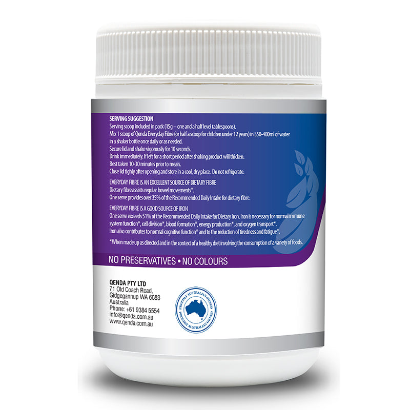 - Mix one level scoops of Qenda Everyday Fibre (or half scoop for children under 12 years) in 350-400ml of water in a shaker bottle once or twice daily.